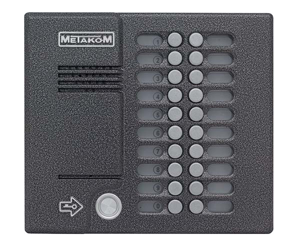 Блок вызова МЕТАКОМ МK20.2-TM4E с прямой адресацией абонентов представляет собой специализированную микропроцессорную систему, предназначенную для установки в многоквартирных домах, офисах, а также для организации системы селекторной связи с числом абонентов до 20.